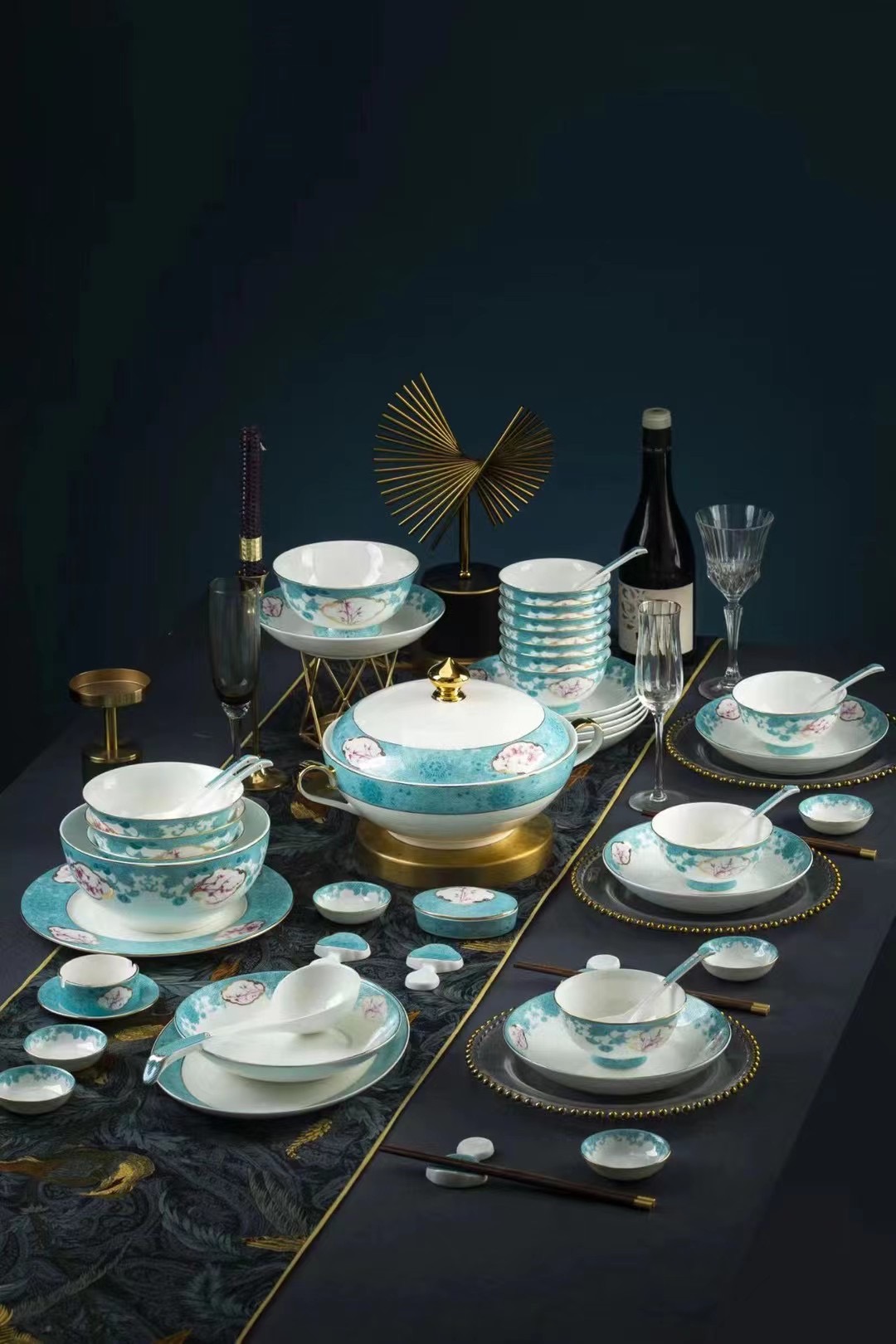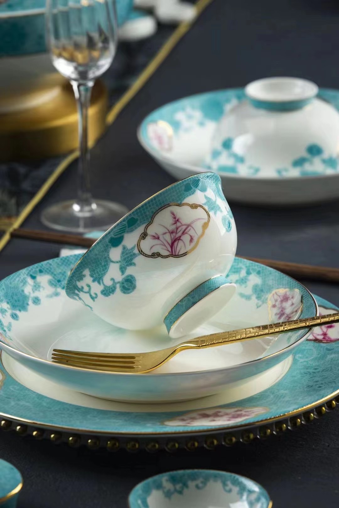 花卉琺瑯彩陶瓷餐具套組