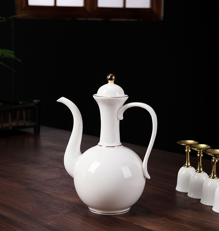 羊脂玉描金酒具 陶瓷酒具禮品