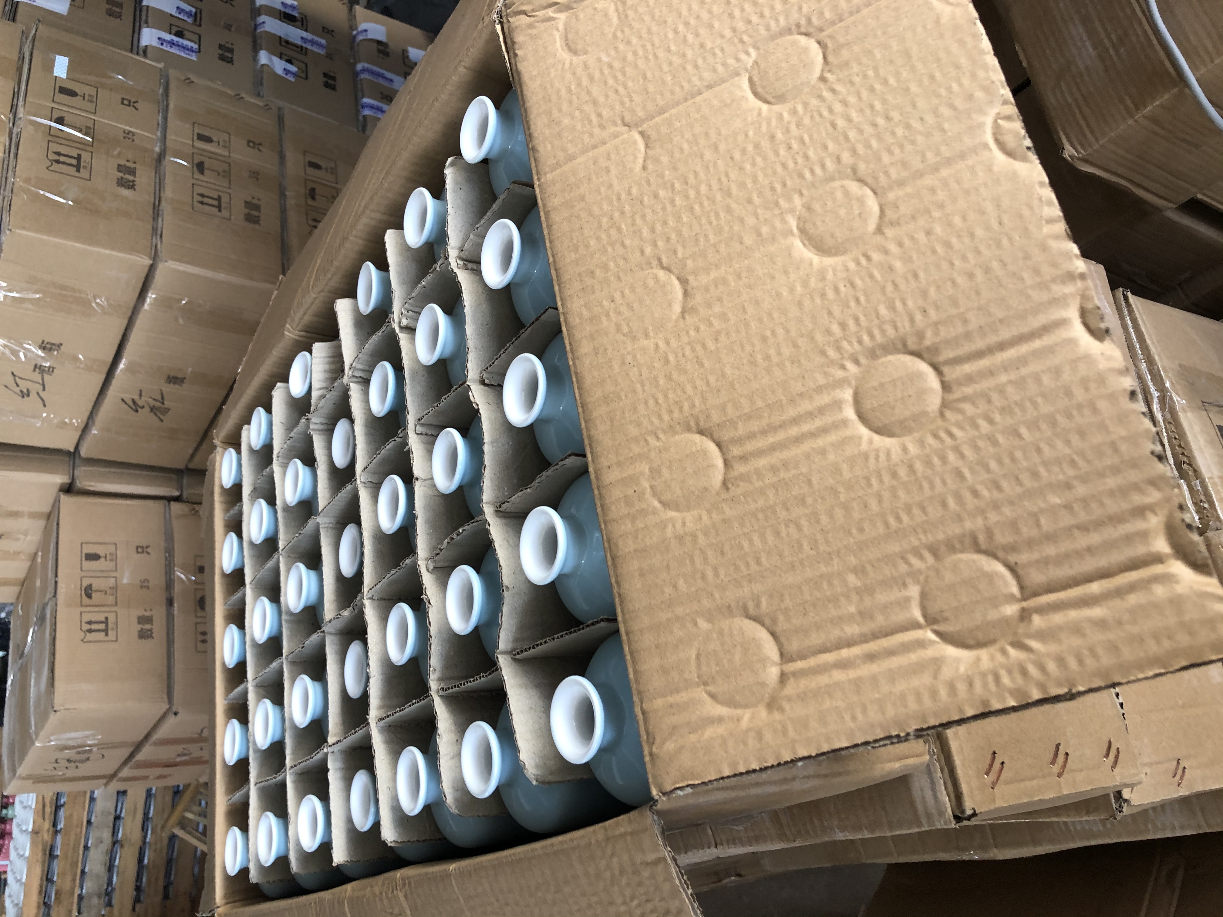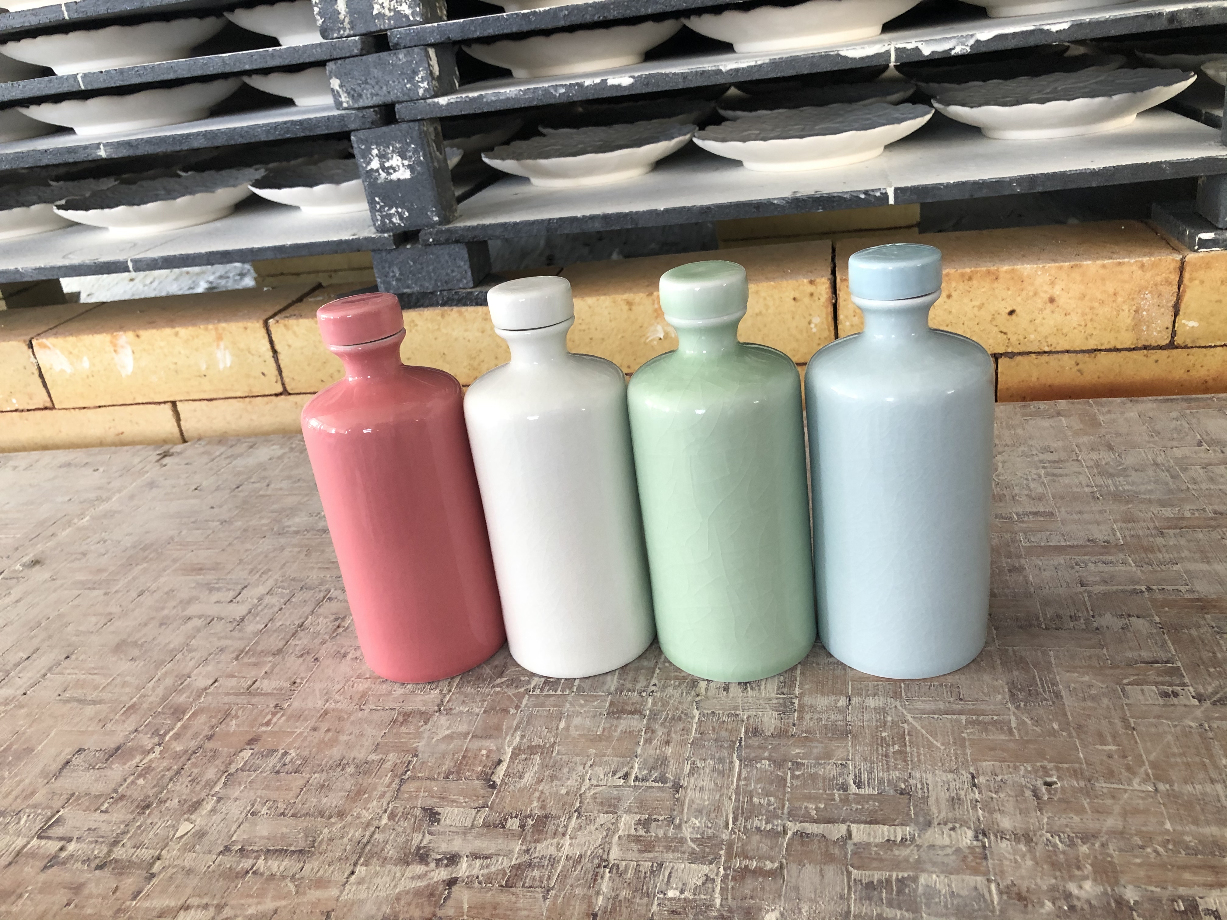 四色陶瓷酒瓶,這次顧客定制的是陶瓷酒瓶,本次訂單有3000個(gè),四種顏色的酒瓶,白色,粉色,綠色,藍(lán)色。這些顏色都是顏色釉調(diào)配成的,顏色釉是什么,在釉中加上某種氧化金屬,焙燒后,就會(huì)顯現(xiàn)某種固有色澤,故稱“顏色釉”。釉料中加入不同的金屬氧化物為著色劑,在一定溫度與氣溫中燒成,會(huì)呈現(xiàn)不同色澤的釉,成為顏色釉。