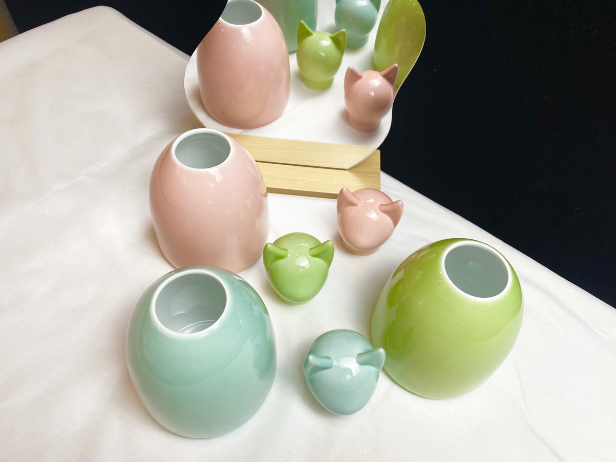 客戶定制三色陶瓷寵物骨灰盒
